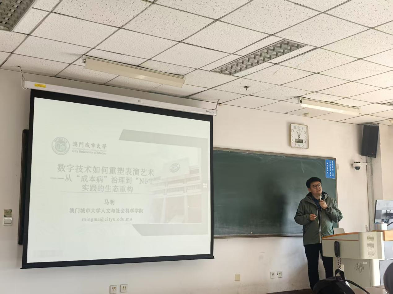 2025年11月17日,我院第32期龙马文心论坛特邀澳门城市大学人文与社会科学学院教授、博士生导师马明,为师生带来题为《数字技术如何重塑表演文化生态——从“成本病”治理到“NFT”的实践探索》的精彩分享。讲座由我院文化与传媒学院助理教授张艺璇主持。