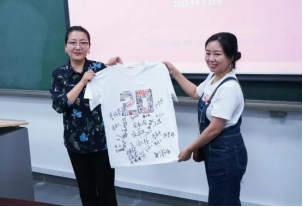 座谈会期间,一件T恤在校友们手间传递。T恤上引人注目的“20”字样由2001级新闻专业所有校友的名字拼接而成,校友们在T恤上签上自己的名字后将其赠送给学院,作为校友纪念。它定会带着他们期待的目光见证文化与传媒学院未来的辉煌篇章。