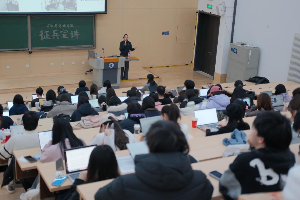 为积极响应国家号召,鼓励青年学子投身强军事业,12月15日下午,文化与传媒学院邀请中央财经大学武装部办公室主任何力立老师在沙河校区13号楼125教室举办征兵政策主题宣讲会。
