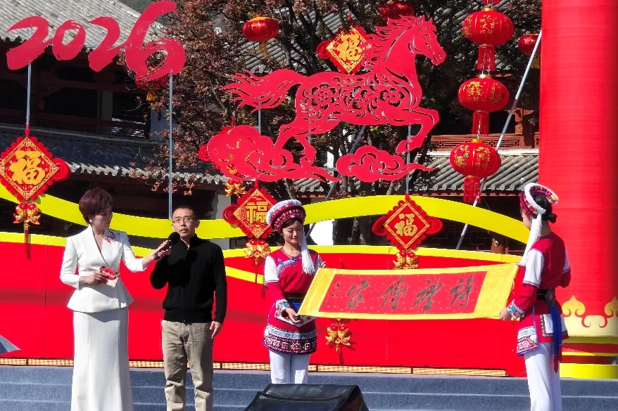 2026年2月8日,我院张冰教授受邀参加2026年全国“我们的节日·春节”主题文化活动暨“联墨飘香迎新春·古韵新风颂文明”原创楹联诗词展示活动,并在活动第二篇章《古今和韵·文明传家》的核心节目《传家》中担任书法创作嘉宾。活动在大理白族自治州剑川县剑阳楼广场盛大启幕。