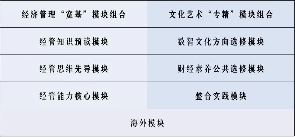 CMBA精心打造卓越培养体系,基于中央财经大学雄厚的经营培养模块组合,塑造具备金融财务专长、国际化视野、创新能力与社会责任感的“宽基”素养,同时融合文创运营与内容创业的全链条培养模式,聚焦数智时代文创转型的“专精”能力提升,培养具有卓越审美、适应数智变革、拥有跨界能力的复合型文创管理精英。
