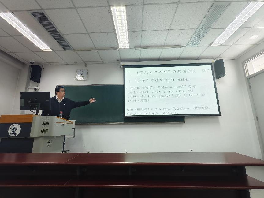 讲座后的互动环节反响热烈。针对师生们普遍关心的如何深入地体会《国风》中的人民性问题,董老师结合自身研究与在中央社会主义学院的经验,提供了切实建议。他强调了要深入体会《国风》所蕴含的民间本色、大众情感和现实主义精神,寻找跨越时空的共鸣。与此同时,学院师生特别就“风”“雅”“颂”三者的排序问题与董老师展开了深入探讨。讨论聚焦于《诗经》文献中的“蛛丝马迹”展开。董老师以诗歌中文字做注现象为切入点,得出历史上部分时期极有可能是“颂”“雅”“风”顺序排列。董老师强调,如果能对现代诗经分析提出新的见解,那就是真正地体会到了“诗”与“经”的魅力,汲取到了心灵的成长与圆满的养分。本次讲座内容丰富,涵盖面广,视野开阔,为文化与传媒学院师生深入探讨《国风》的“还原”提供了极具启发性的学术视角,激发了大家对于《诗经》的深入思考,有力推进了我院中国古代文学的高质量发展。