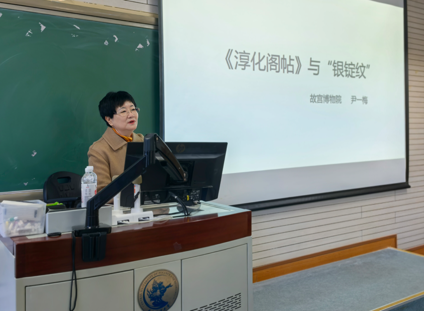 2025年11月16日下午,我院第33期龙马文心论坛特邀故宫博物院研究馆员尹一梅老师,为师生带来题为《〈淳化阁帖〉与“银锭纹”》的深度学术讲座,讲座由我院艺术系主任张冰教授主持。