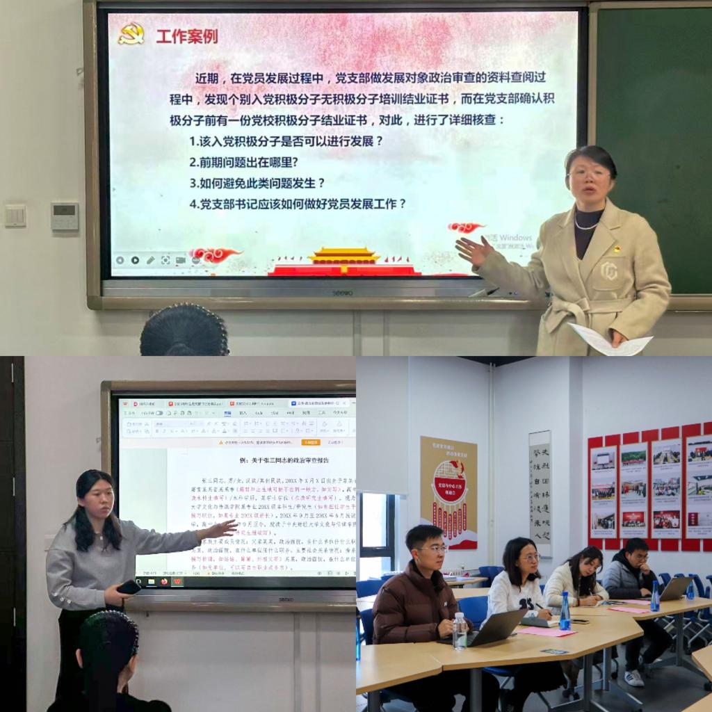 学院党委组织员张琳琳围绕发展党员工作政策,结合近期遇到的问题与档案检查情况,对党员发展工作进行了系统培训。她详细梳理了党员发展的全过程,结合近期党员发展中的具体案例进行了政策分析与全面讲解。学院党务干事李涵秋同志整理了发展党员过程中涉及的各类关键文书材料,强调了文件撰写的政治性、规范性与真实性要求,以及近期需重点推进的党务工作。