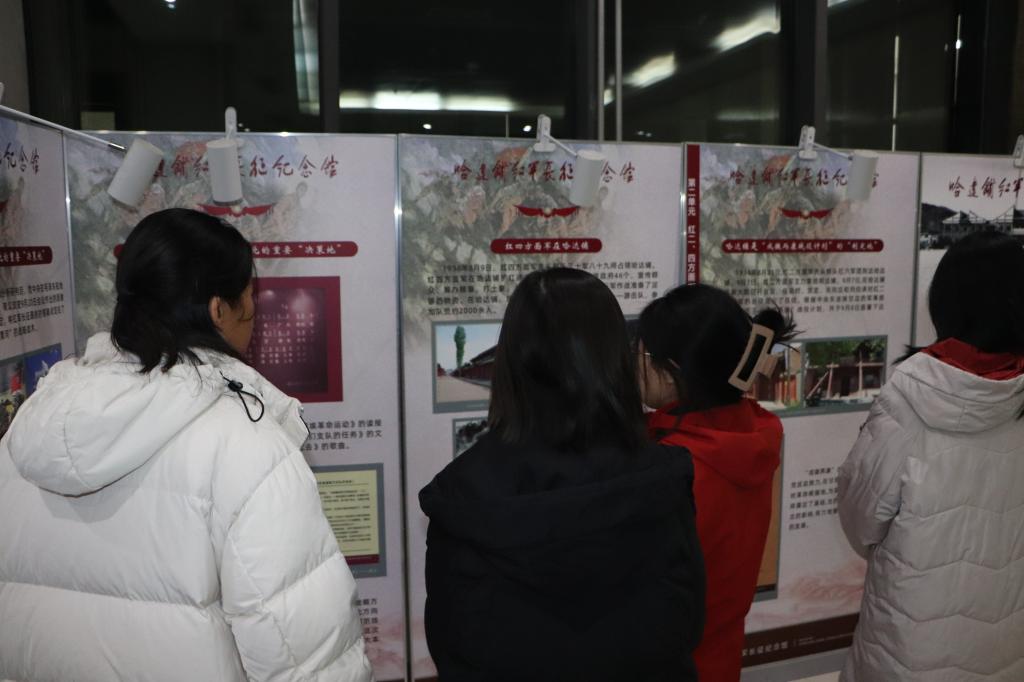 主持人简要介绍了本次活动的背景与流程,全体成员参观“红军长征在哈达铺”抗日主题展览。展览以珍贵的历史图片与文献资料生动呈现了红军在哈达铺休整补给、队伍整编与决策北上的三大关键历史片段,党员们驻足观看,深刻领悟长征岁月的艰辛与辉煌,感受中国共产党人坚定的理想信念与不屈的斗争精神。